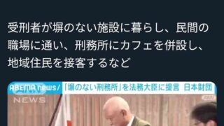 嫌儲 日本財団「壁のない刑務所を作れ。受刑者は近隣の職場で働き、刑務所にはカフェを作って地域民を受刑者が接客する」