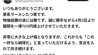 エッヂ 家系ラーメンさん、700円値上げの告知でクソ叩かれる