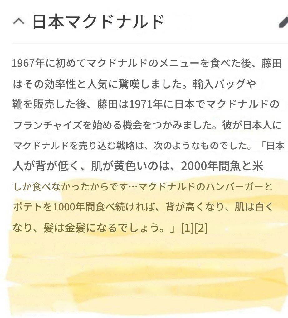 - 藤田田(ふじたでん)はハンバーガーを安く食わせたいという思想があったからまだ良かった
