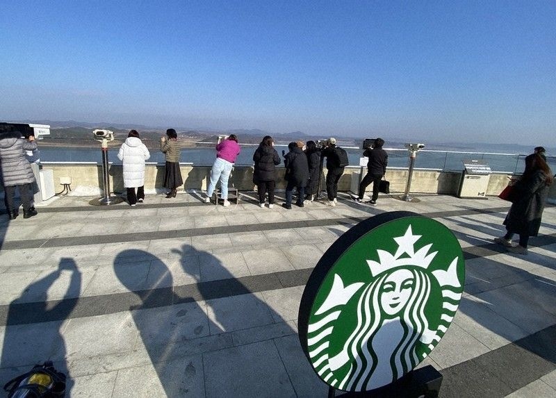 「北朝鮮が見えるスタバ」人気 開店7か月で12万人来店=韓国