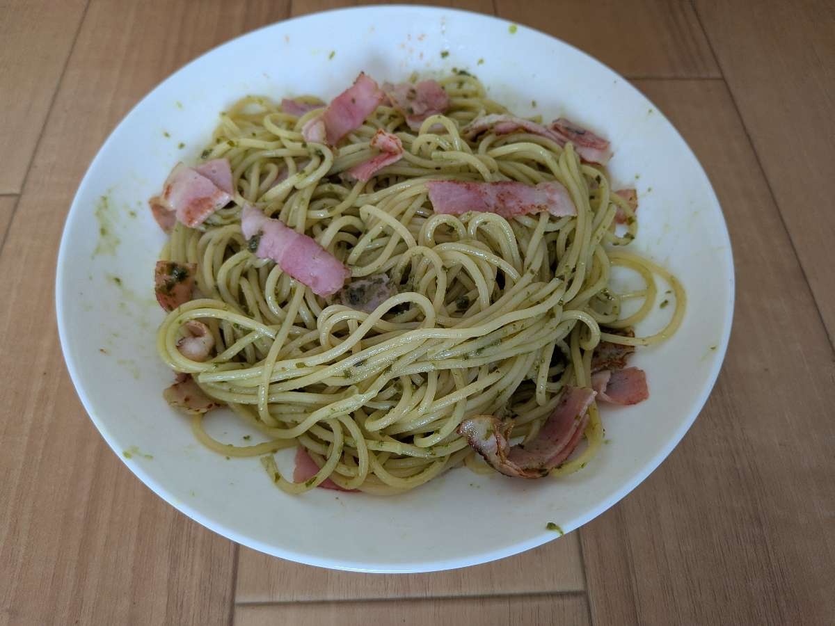 - バジルソースパスタなのでは