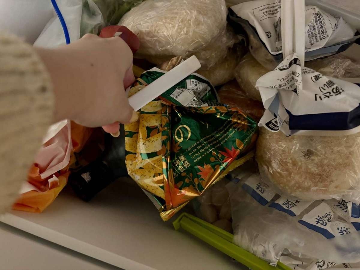 開封したポテトチップスの袋の口をしっかり閉じた状態で、そのまま冷凍庫に入れるだけ。
