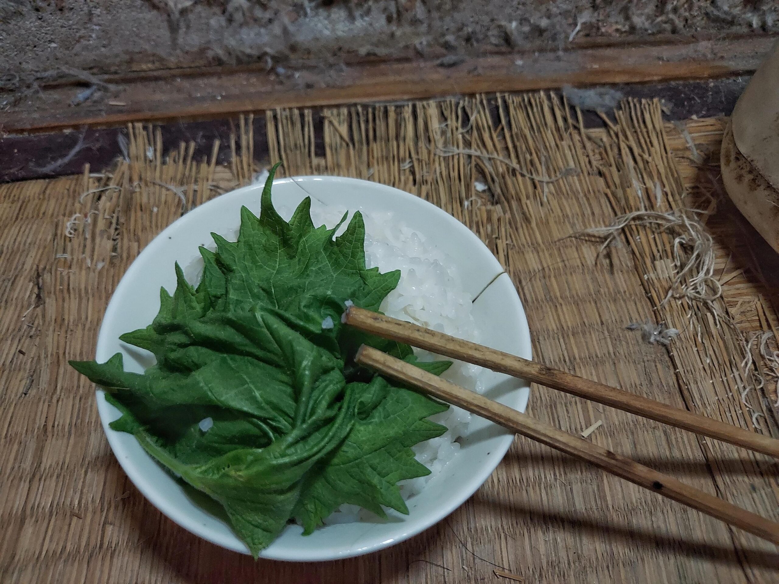 【画像】 (ヽ´ん`)「近所に生えてるシソの葉を拝借して、シソご飯にしてる。自然でうまい」