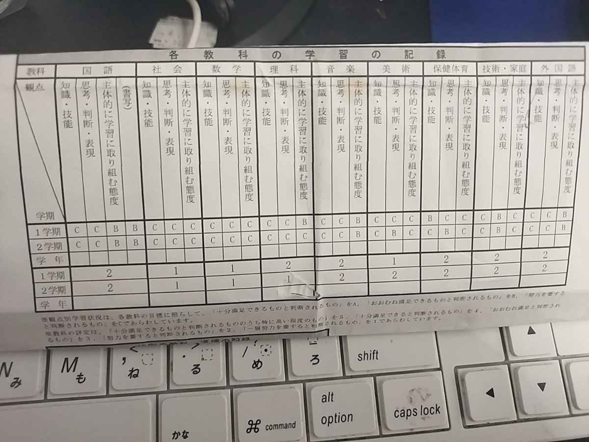 - ちょっと中学の頃の通知表探してくる