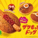 今回は、新商品として「ザクもっちドッグ あらびきソーセージ」「ザクもっちドッグ 欧風カレー」を発売。すでに販売中の「ザクもっちドッグ タマゴ」とあわせ、全3種をラインアップする。