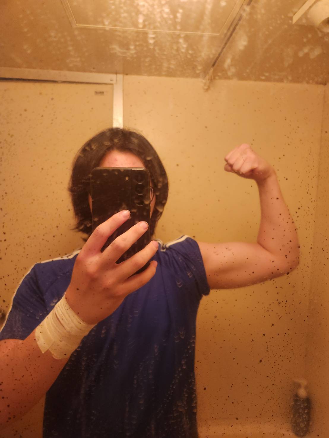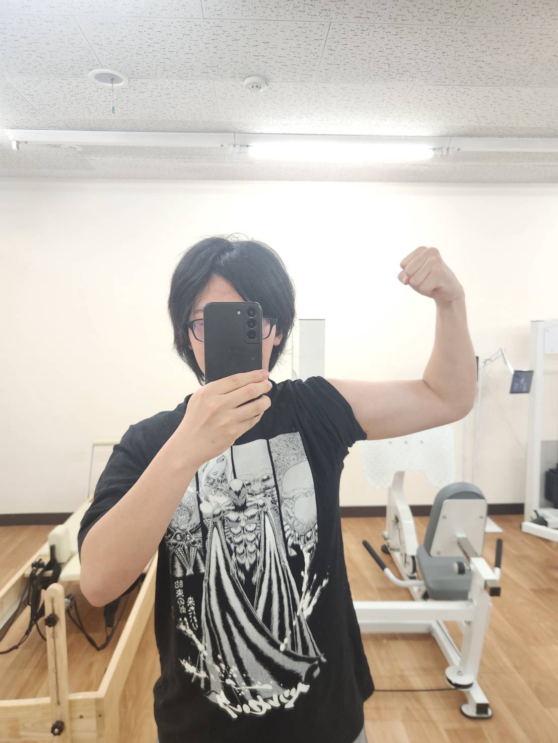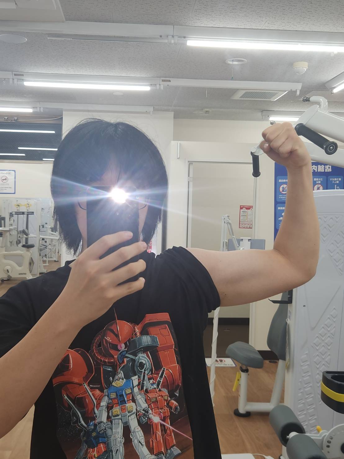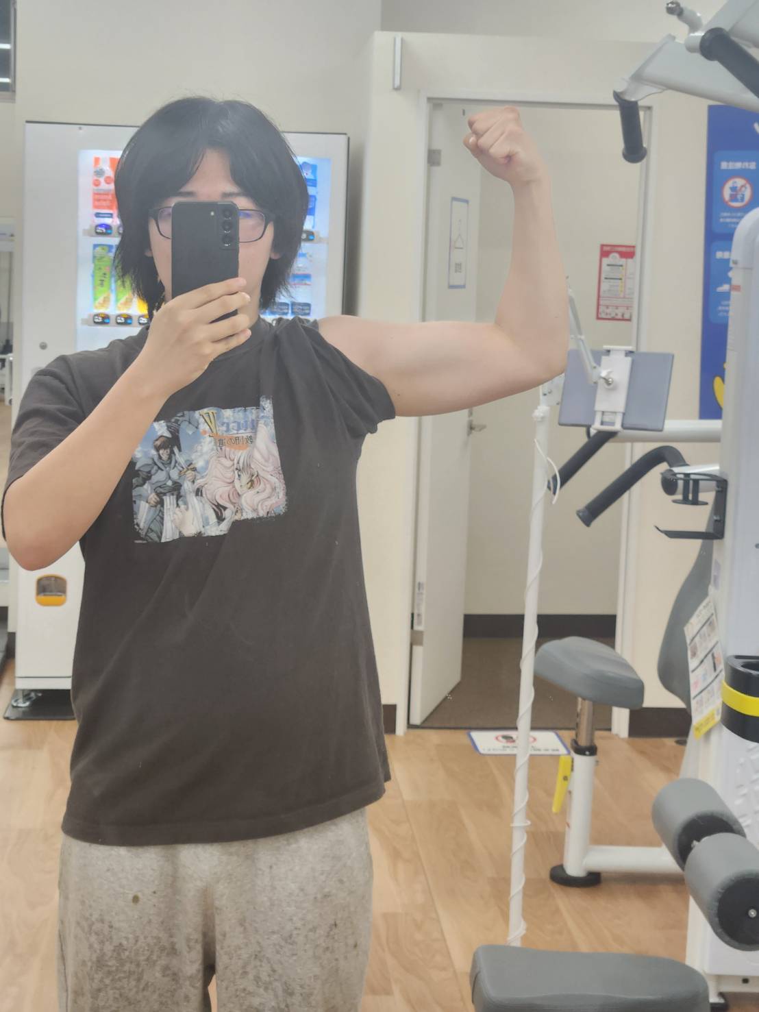 やってたことはすたすらバイセップスカールとチェストプレスとショルダープレスそれ以外は何もしてない