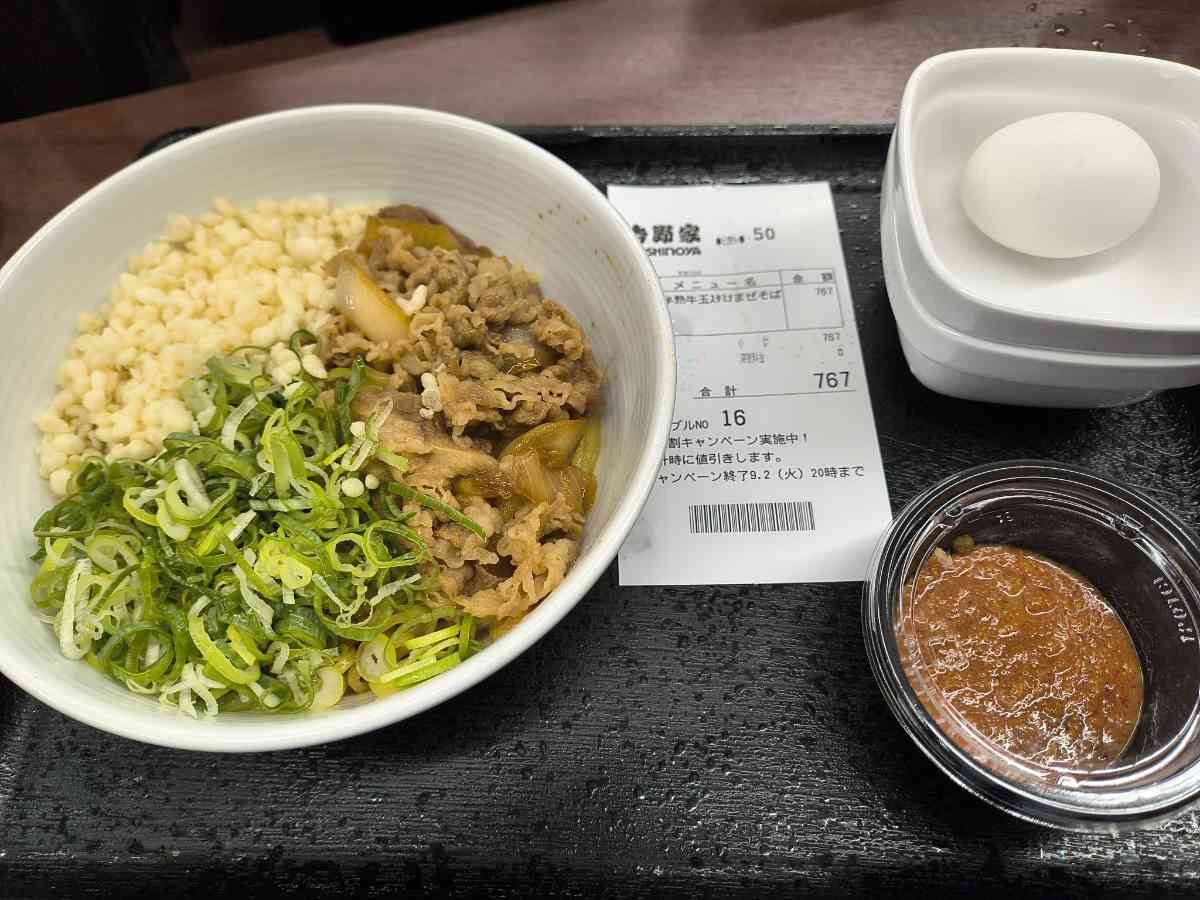 - 吉野家の牛肉を麺で食べられるなんて斬新やん