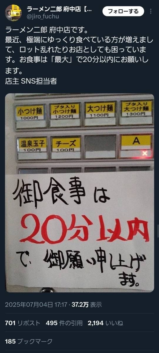 20分で食えない方は来なくて結構です- 20 : 2025/07/05(土) 09:32:22.988 ID:vyEmKgZD0