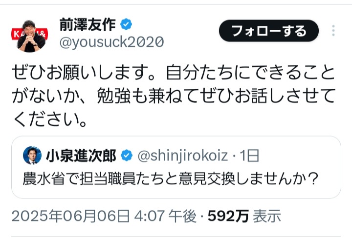 毎日新聞「小泉進次郎がビンテージ米にすればいいと言った」小泉進次郎「言ってないし」