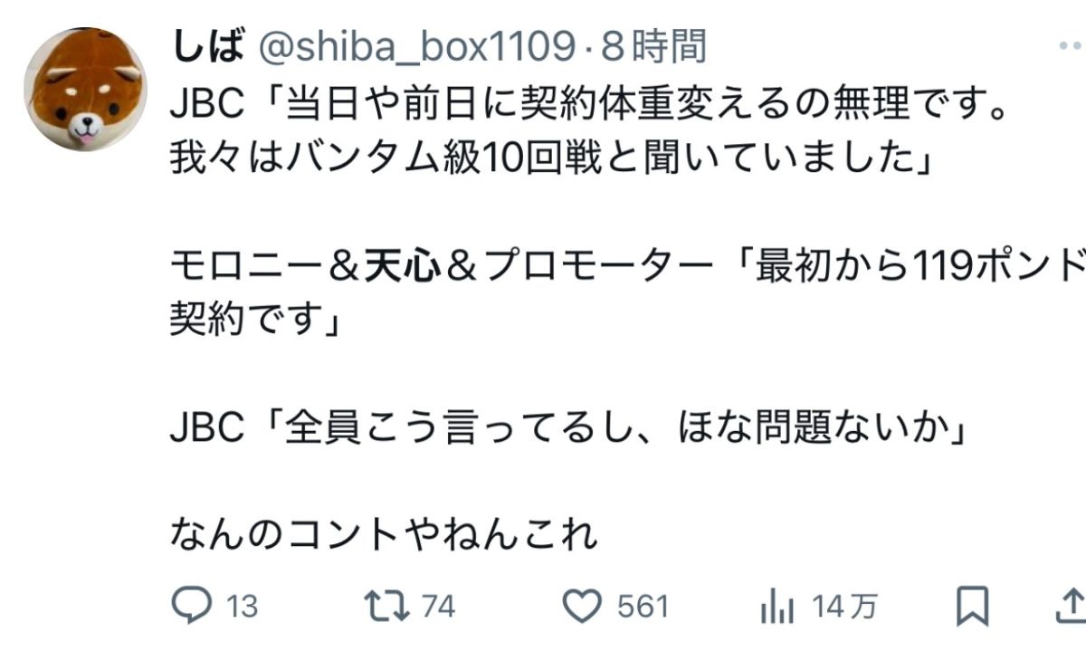 つまり天心は楽できてモロニーはいつもより重い体重で戦うことになる