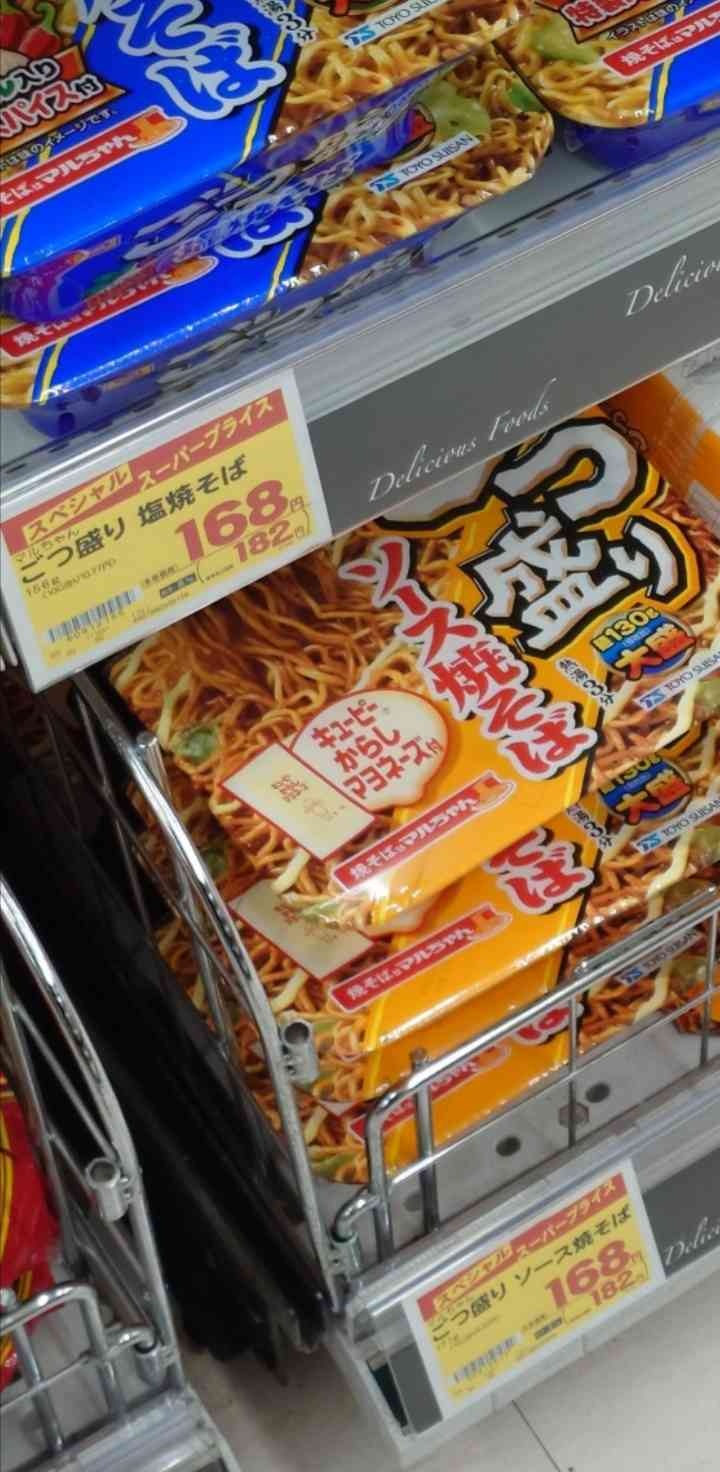 - ごつ盛りおいてるなかでは近所で一番高いスーパーでも焼きそば128円、カップラ108円なのだが