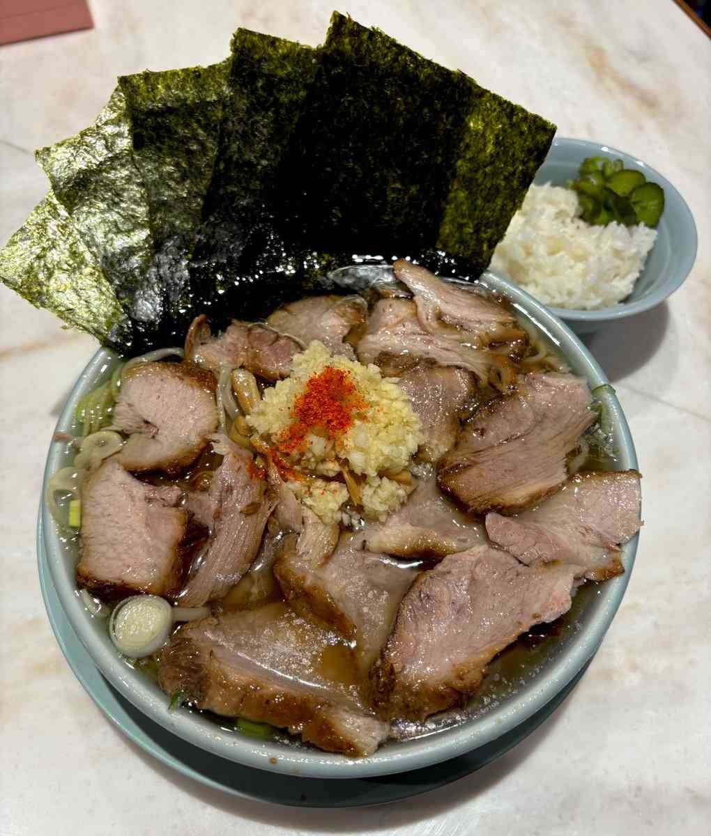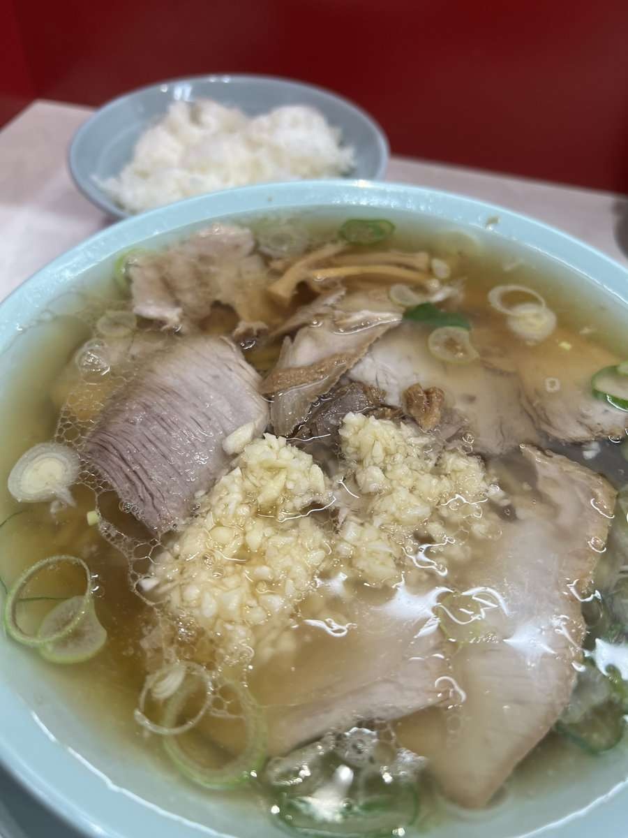 - シンプルな中華そばながら脂きいててニンニクや米が合う