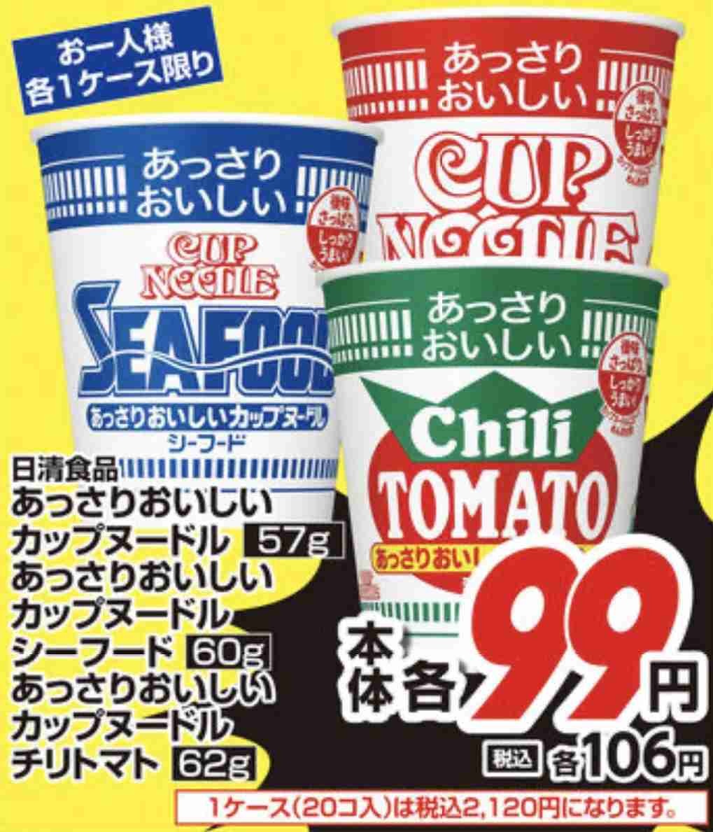 「カップヌードルが99円?やっす!!…ん?」