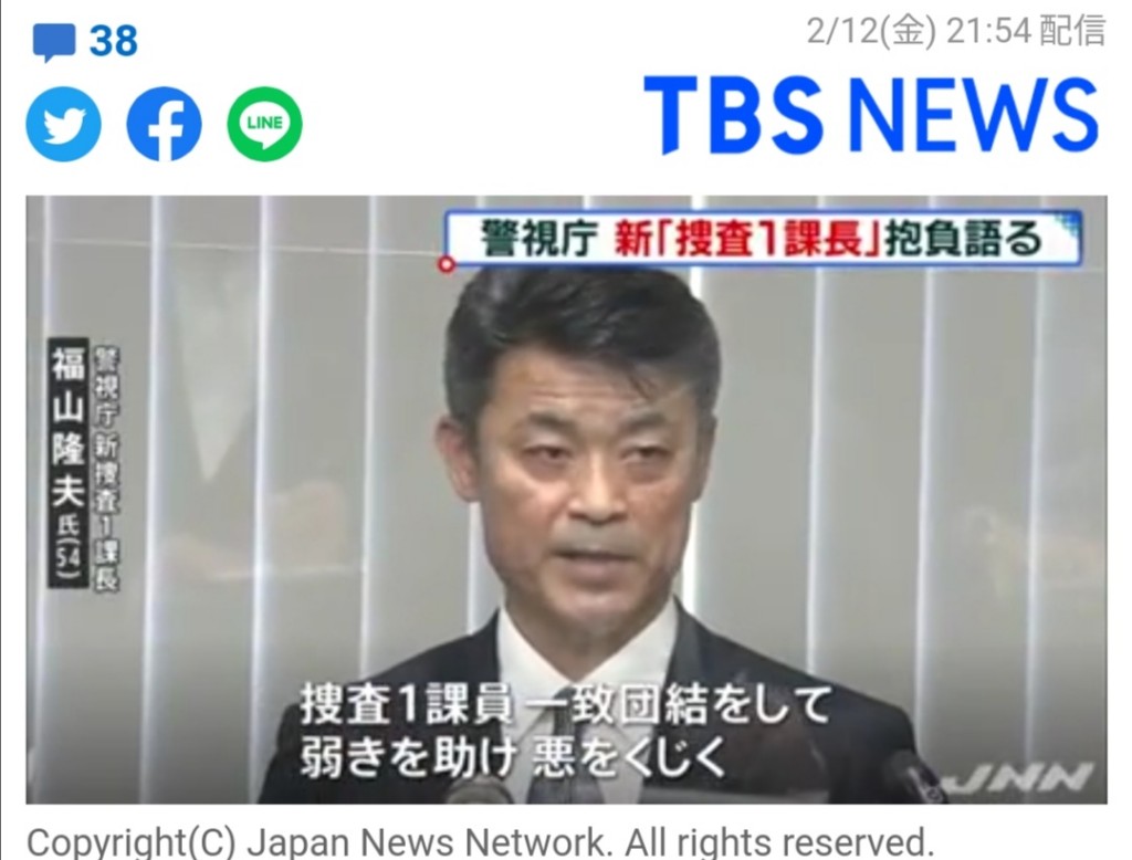 「捜査1課員一致団結をして、弱きを助け、悪をくじく。被疑者を必ず検挙いたします」(警視庁捜査1課長に就任する福山隆夫氏)