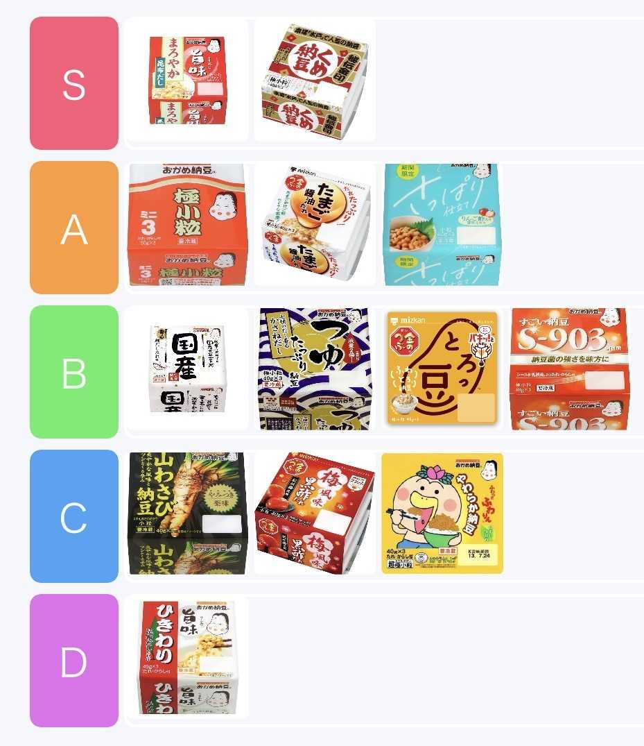 ぶっちゃけひきわりか小粒中粒大粒で好みあるし、タレの味でも好み分かれるからランクの意味をあんま感じない