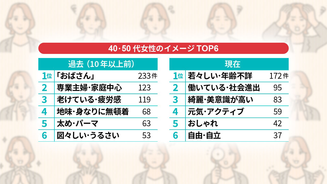 令和の40・50代女性の実態の変化に、「おばさん」というラベルがフィットしなくなっているのかもしれない。