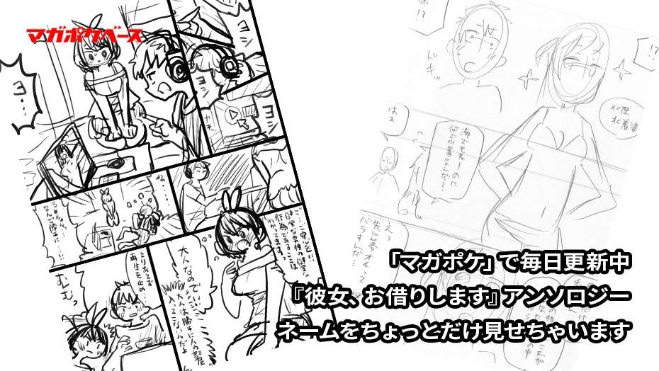 本日8/6から『彼女、お借りします』アンソロジーが「マガポケ」で毎日更新!一発目はなんと宮島先生自身によるアンソロジー(8/6のみ)!