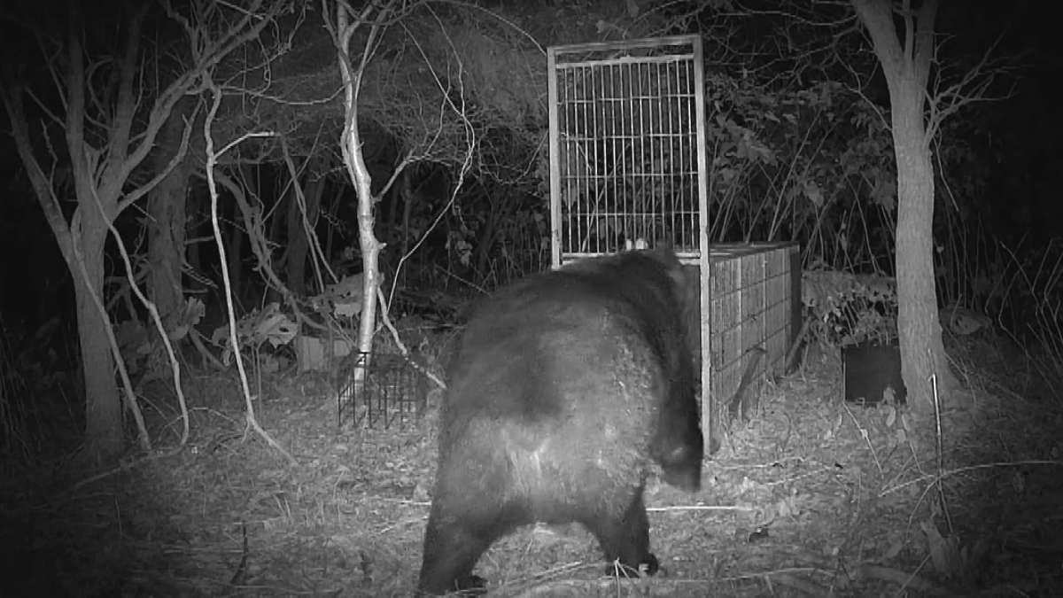 巨大ヒグマ 箱ワナを押し倒す様子 カメラに収められる | NHKニュース