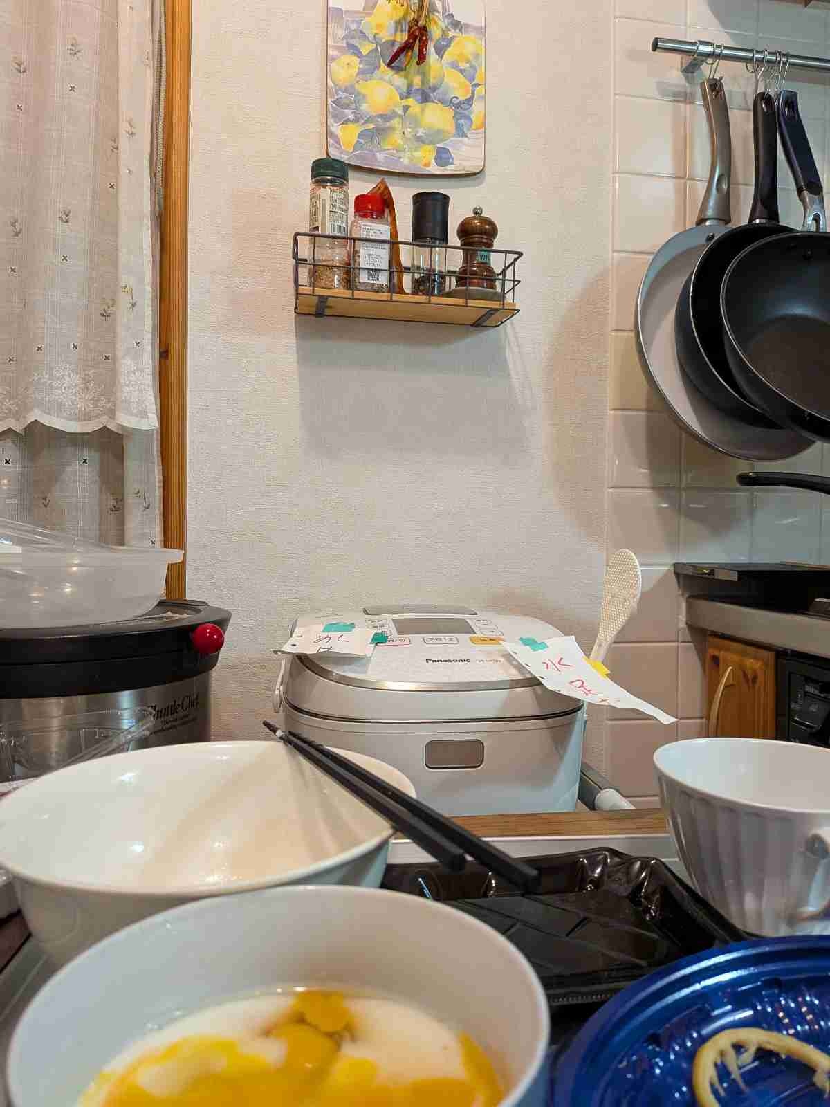 - 米が硬いから炊飯器に水を入れたら書かれた