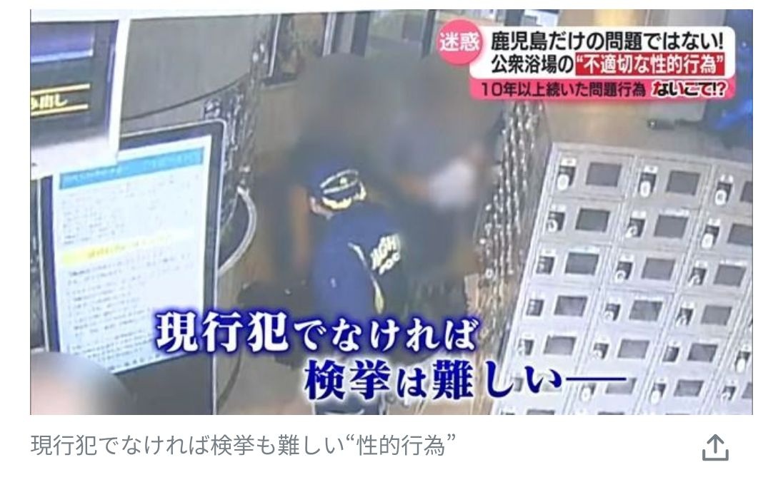 6ページ目 【画像】現行犯でなければ検挙も難しい“性的行為”|【独自取材】公衆浴場の知られざる闇 “不適切な性的行為”で閉店に追い込まれた太陽ヘルスセンター 「公衆浴場法、条例」の“風紀” 正しい解釈は?自治体トップの反応は?|画像詳細|KYT NEWS NNN現行犯でなければ検挙も難しい“性的行為”|【独自取材】公衆浴場の知られざる闇 “不適切な性的行為”で閉店に追い込まれた太陽ヘルスセンター 「公衆浴場法、条例」の“風紀” 正しい解釈は?自治体トップの反応は?|の画像詳細。鹿児島読売テレビのニュースサイト「KYT NEWS NNN」。news.ntv.co.jp - 35 : 2026/01/10(土) 05:05:42.935 ID:R8sTI.4Pi