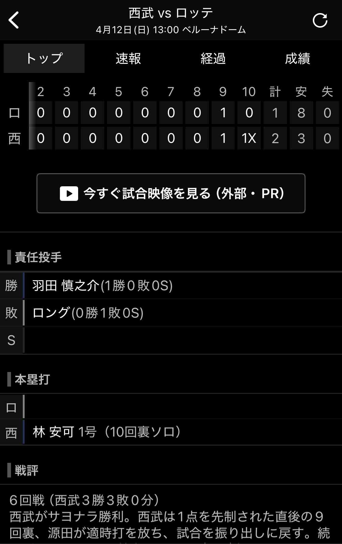 - と、ここで贔屓の試合が終了…w
