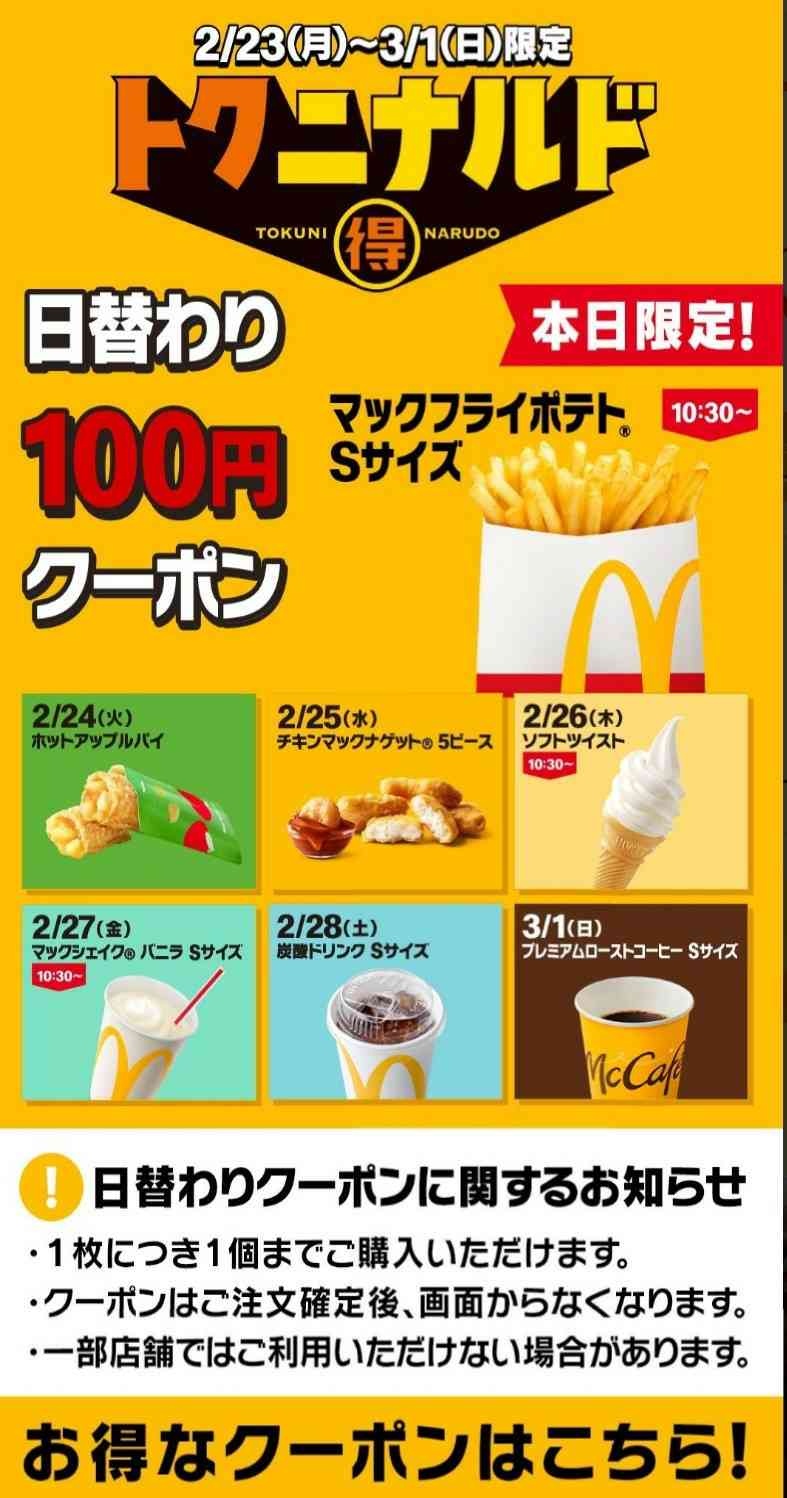 【乞食速報】マクドナルドのアプリで100円クポーン配布キタ───(゚∀゚)───!!!!!