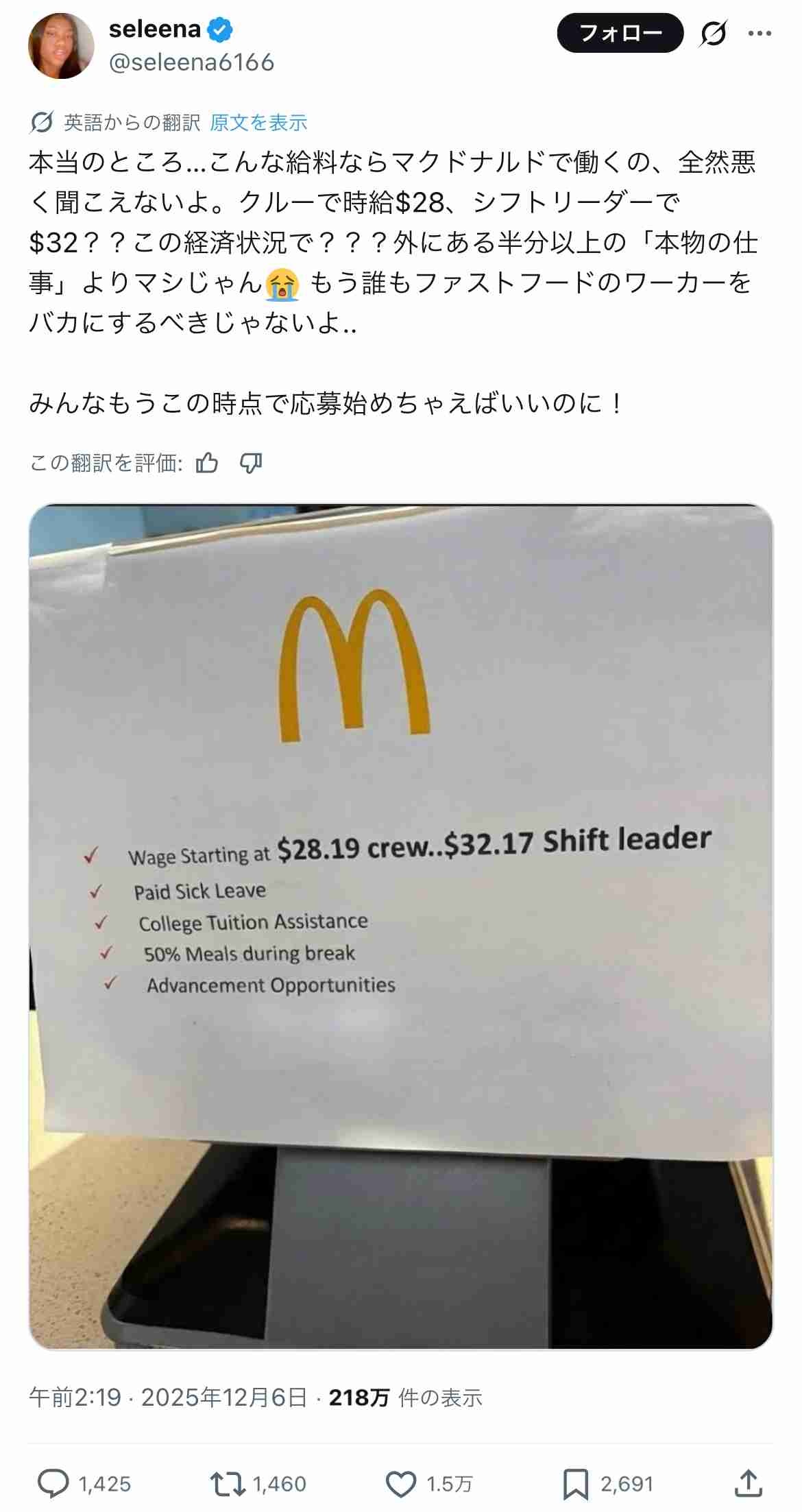 ジャップさん、一生懸命勉強して良い会社に勤めてもアメリカの最底辺池沼扱いのマックよりお金がもらえない - 15 : 2025/12/07(日) 06:51:05.565 ID:FwvSr6Y1E