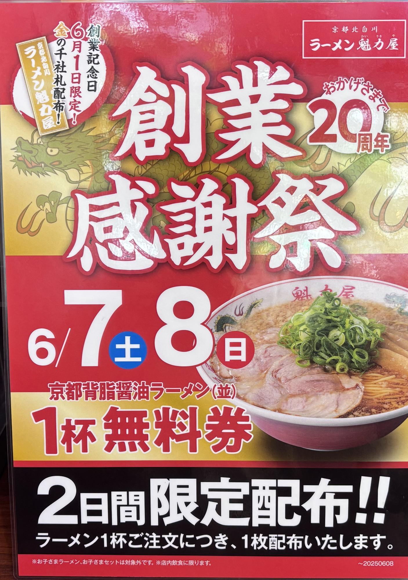 【創業感謝祭】2025年6月1日(日)金の千社札配布!6月7日(土)~8日(日)無料券配布!