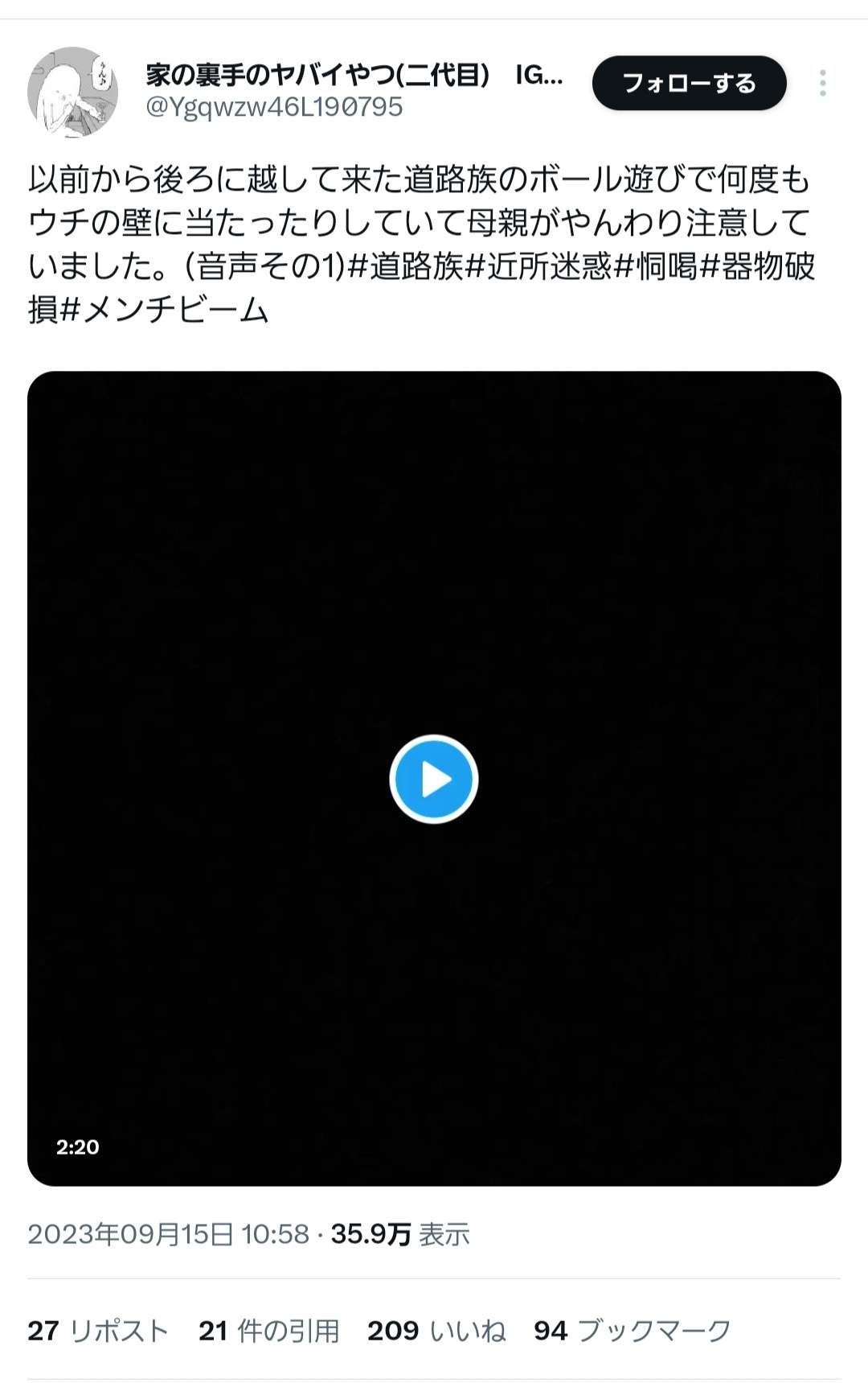 - 隣人のガキが毎朝サッカーしている様子を晒して炎上