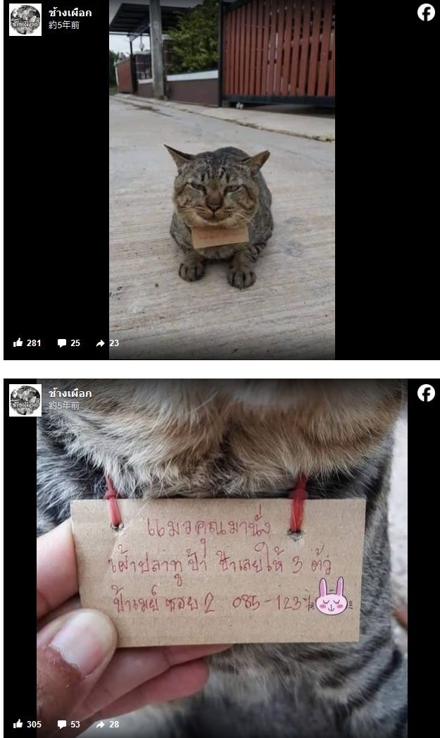 その時、猫の首に手書きのメモがぶら下がっていたのです。