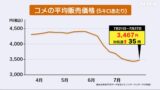 【NHK】全国およそ6000の店舗で7月27日までの1週間に販売されたコメの平均価格は、5キロあたり税込みで3467円と10週ぶり