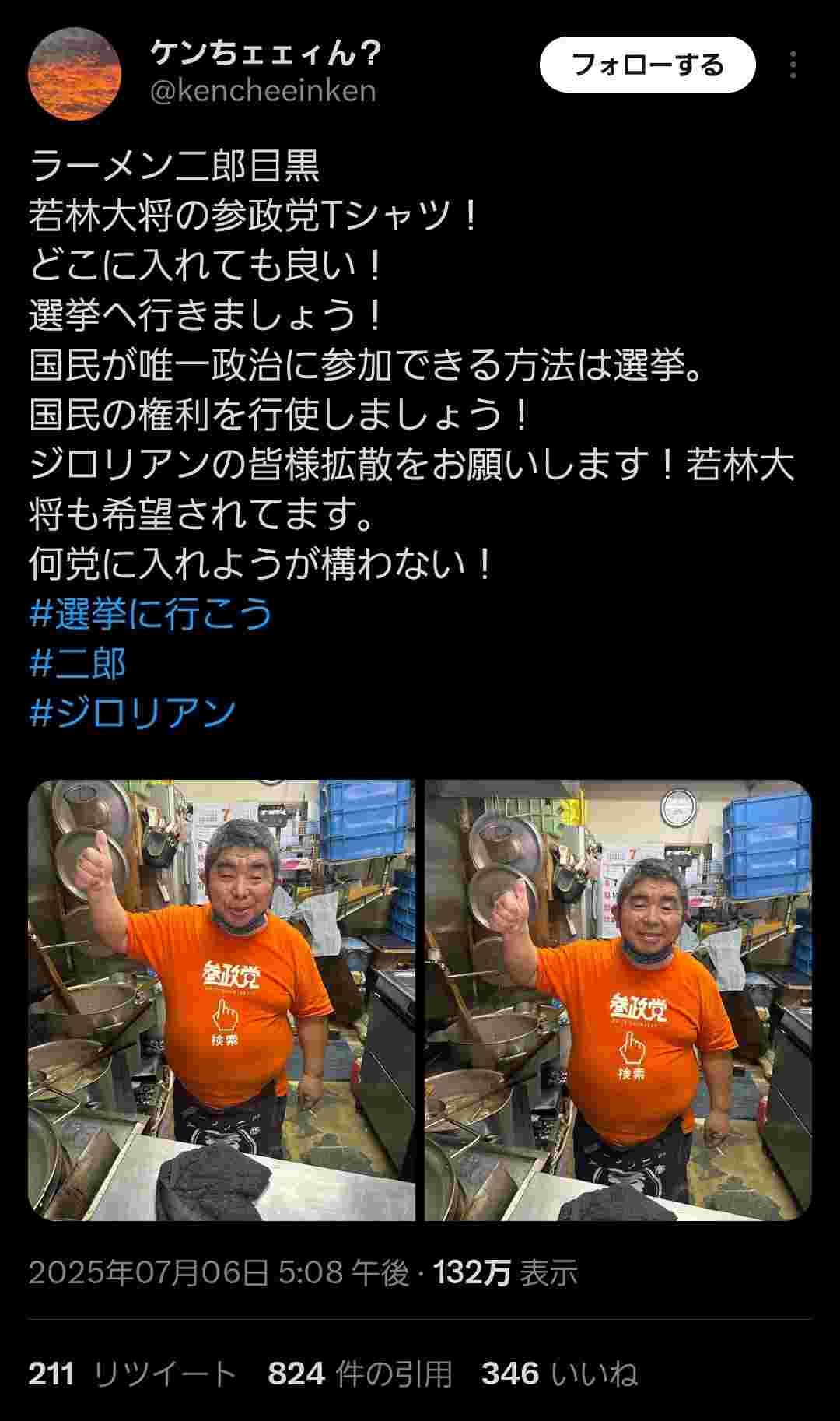 【小麦悲報】ラーメン二郎、参政党支持だったwww