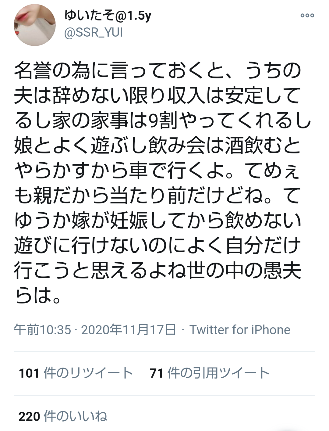 - このご時勢で飲み会あるような夫やししゃーない