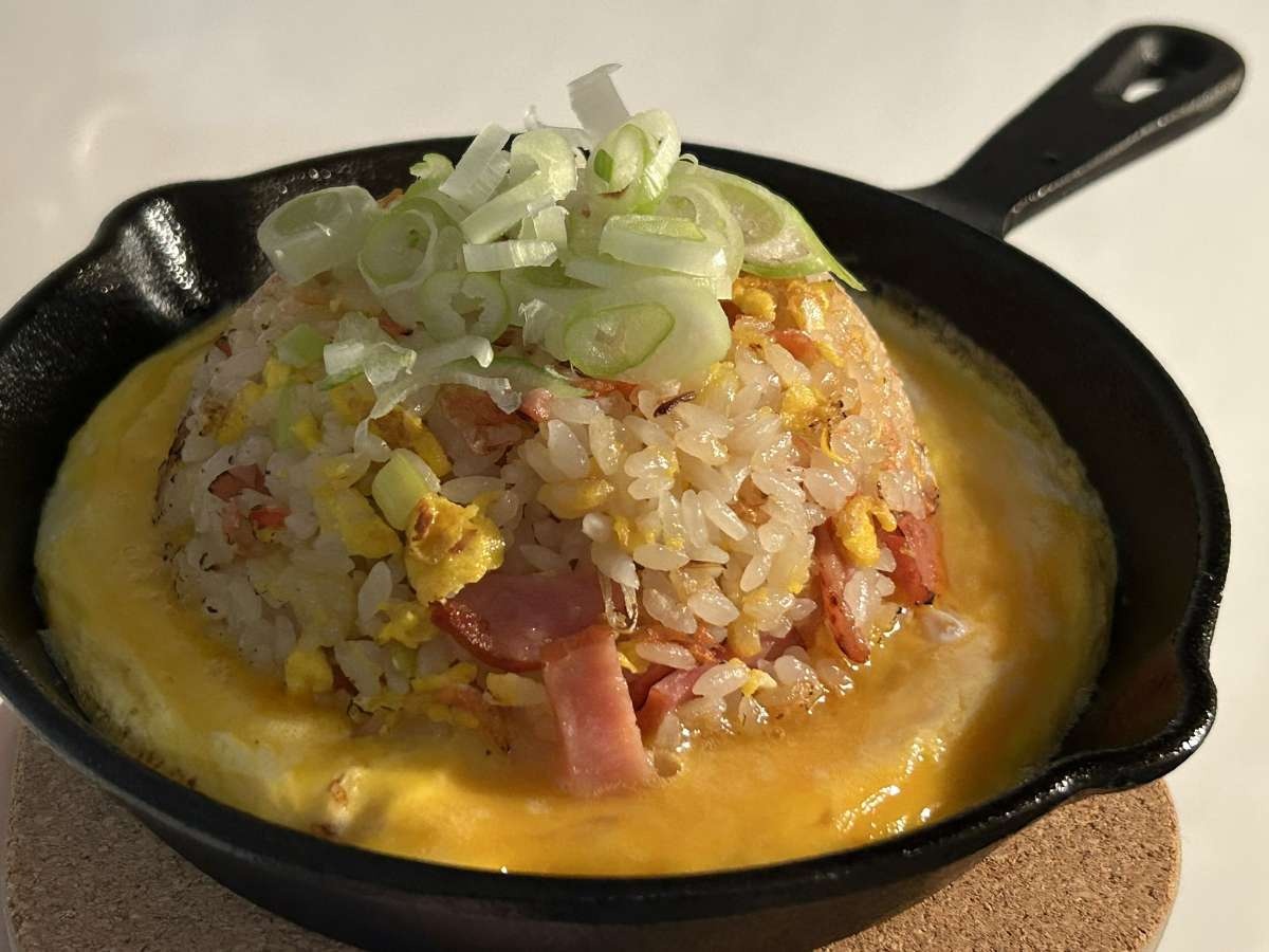 - 幸楽苑の鉄鍋チャーハンみたいに固形燃料ついてて卵や葱に火を通せればまあアリかな…