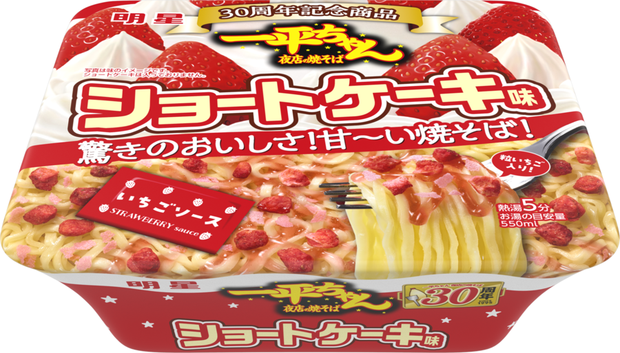 「明星 一平ちゃん夜店の焼そば」30周年を祝う“ショートケーキ味”が登場!
