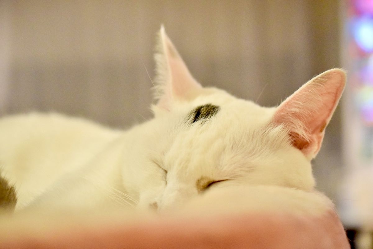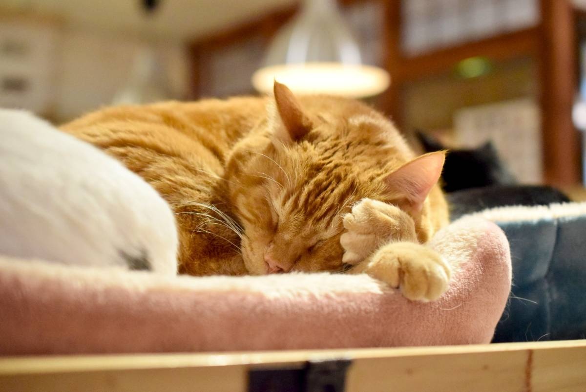 猫カフェの中に猫が退避できるスペースとか作られてるよ猫の寝顔たまらん