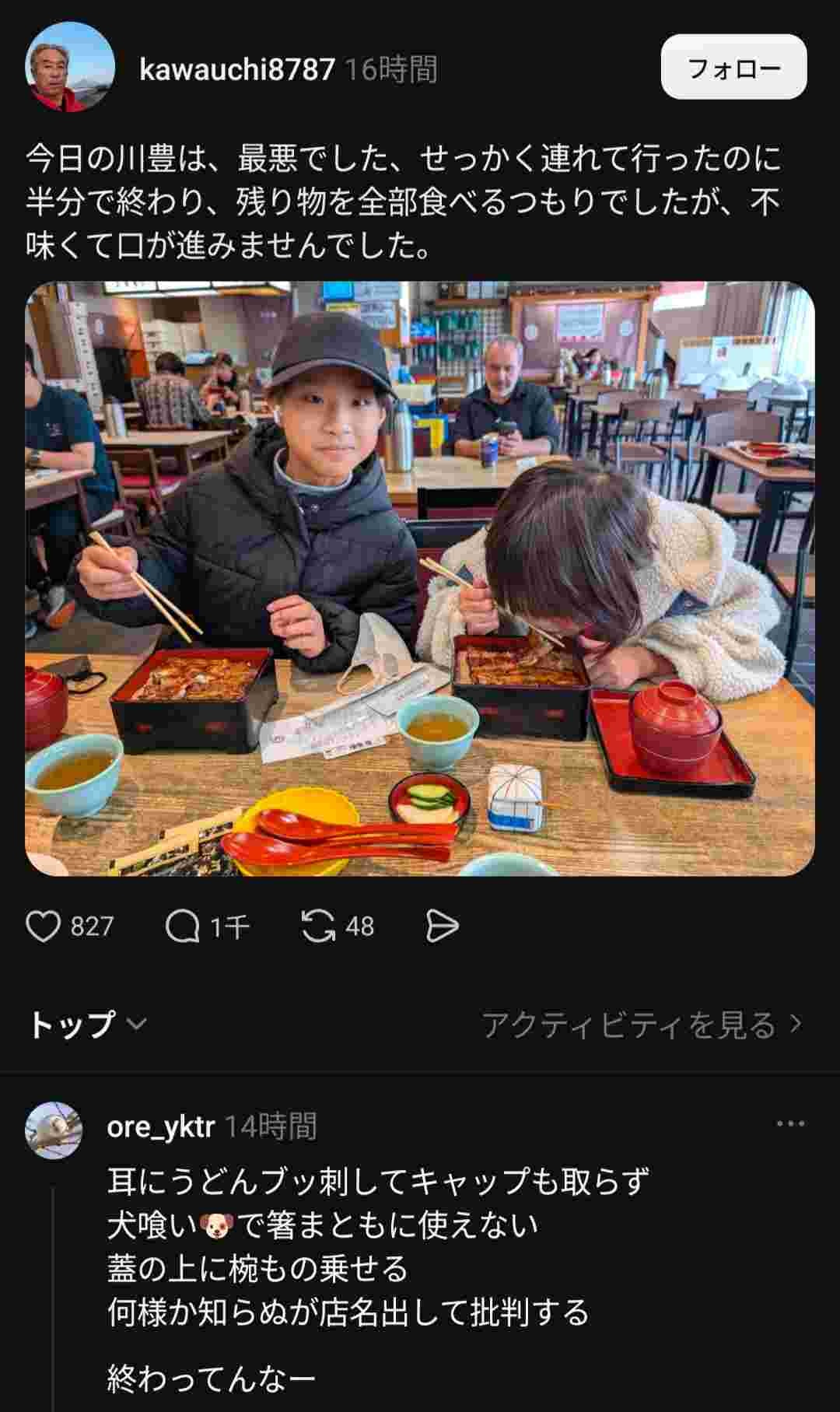見栄張ってガキ2人連れて鰻なんて食べに来て自分の分ケチってんの笑う - 27 : 2026/04/26(日) 08:56:29.798 ID:xMG0+5eD0