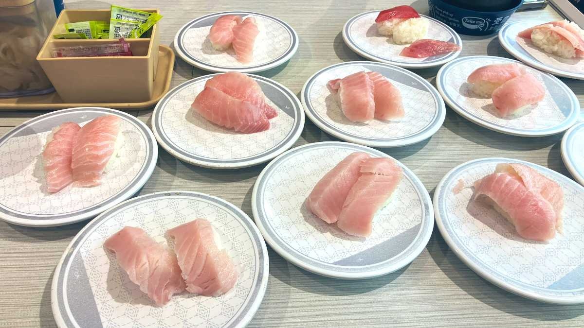 これだけ並んでるのが中トロ大トロだったらそうやけど100円のびんちょうやからな
