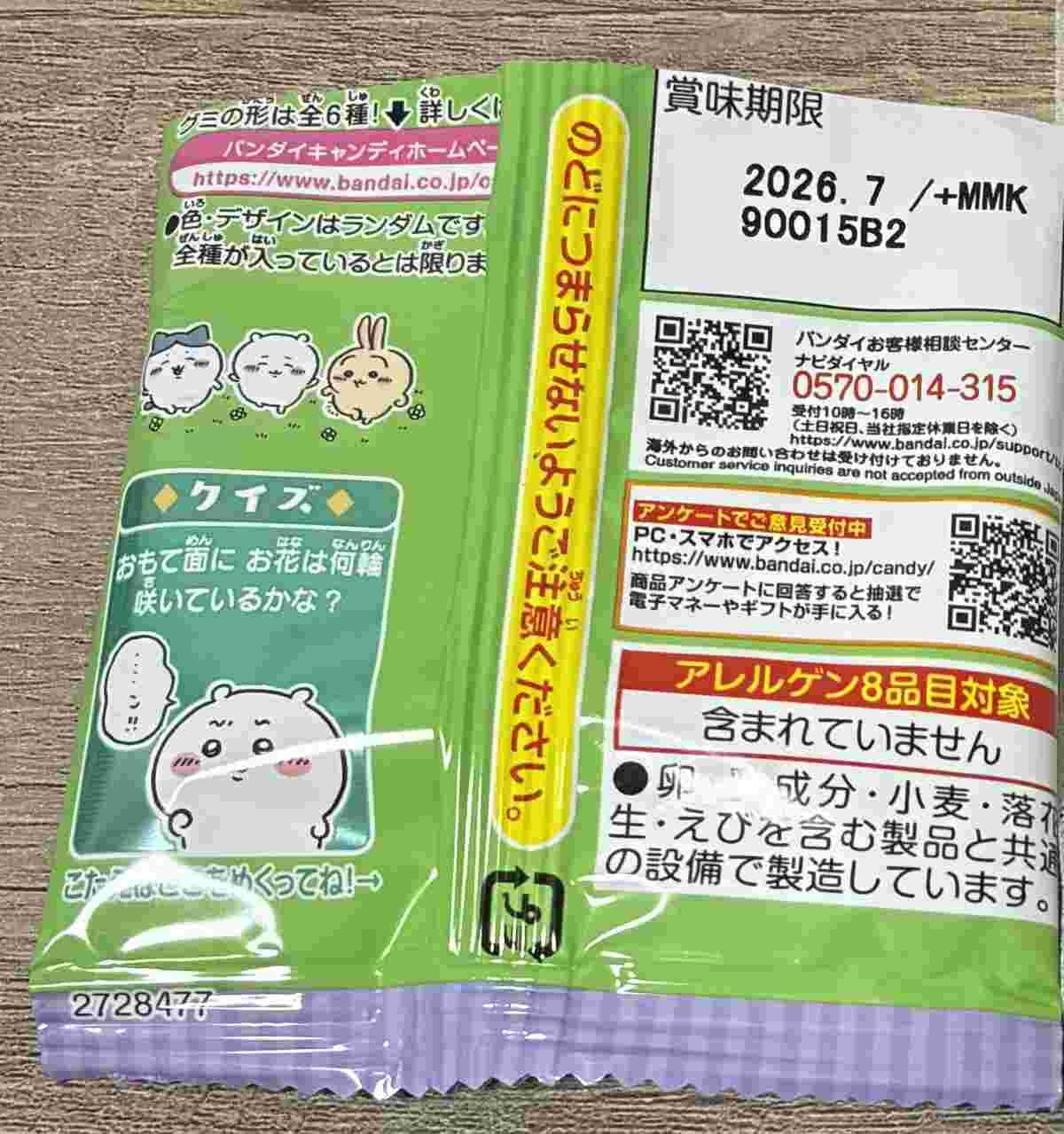 これよく見たら別パッケージに書かれてるちいかわグミのデザイン違うから、「もしかしたらパック毎に違うグミ入ってるんか!?」思ったら