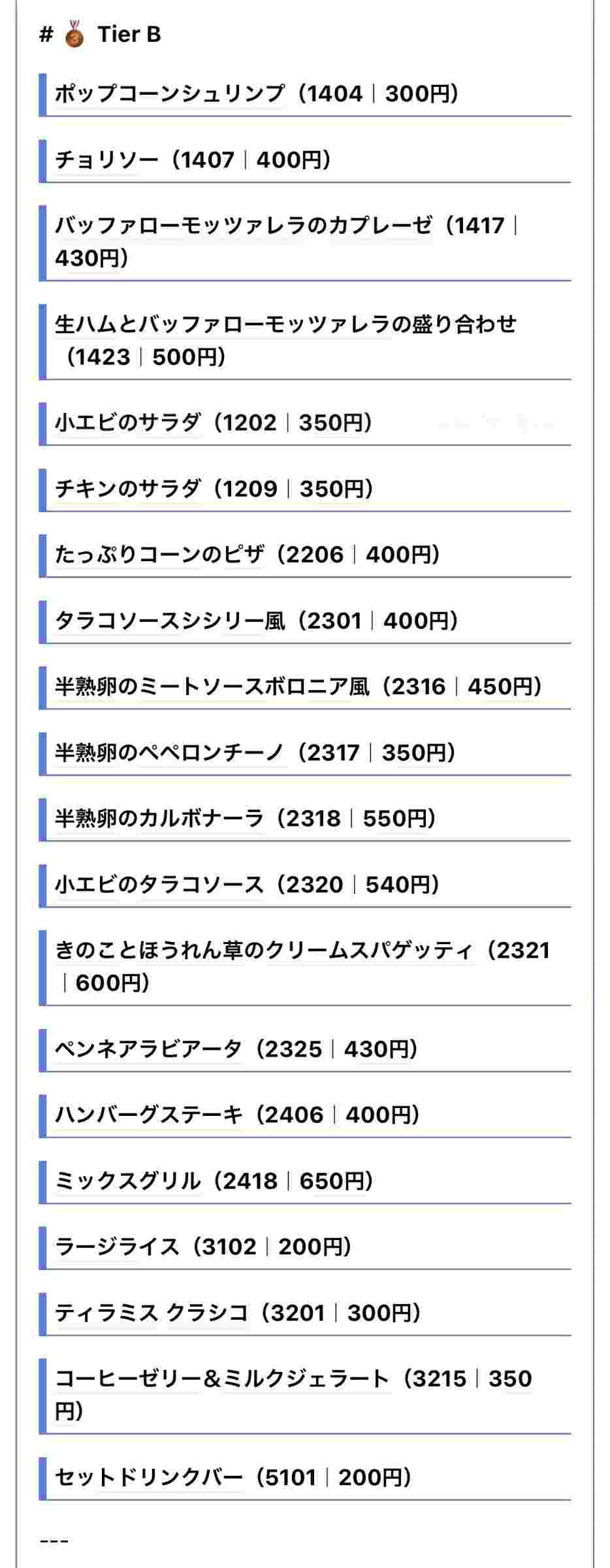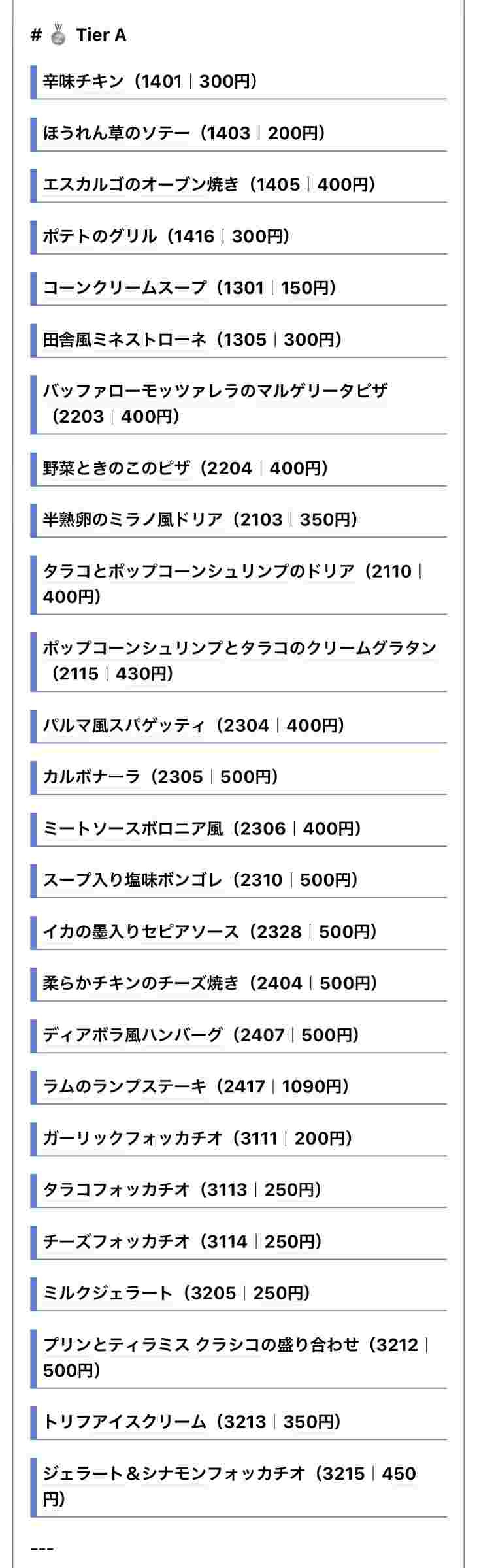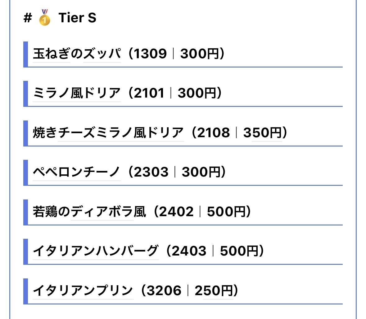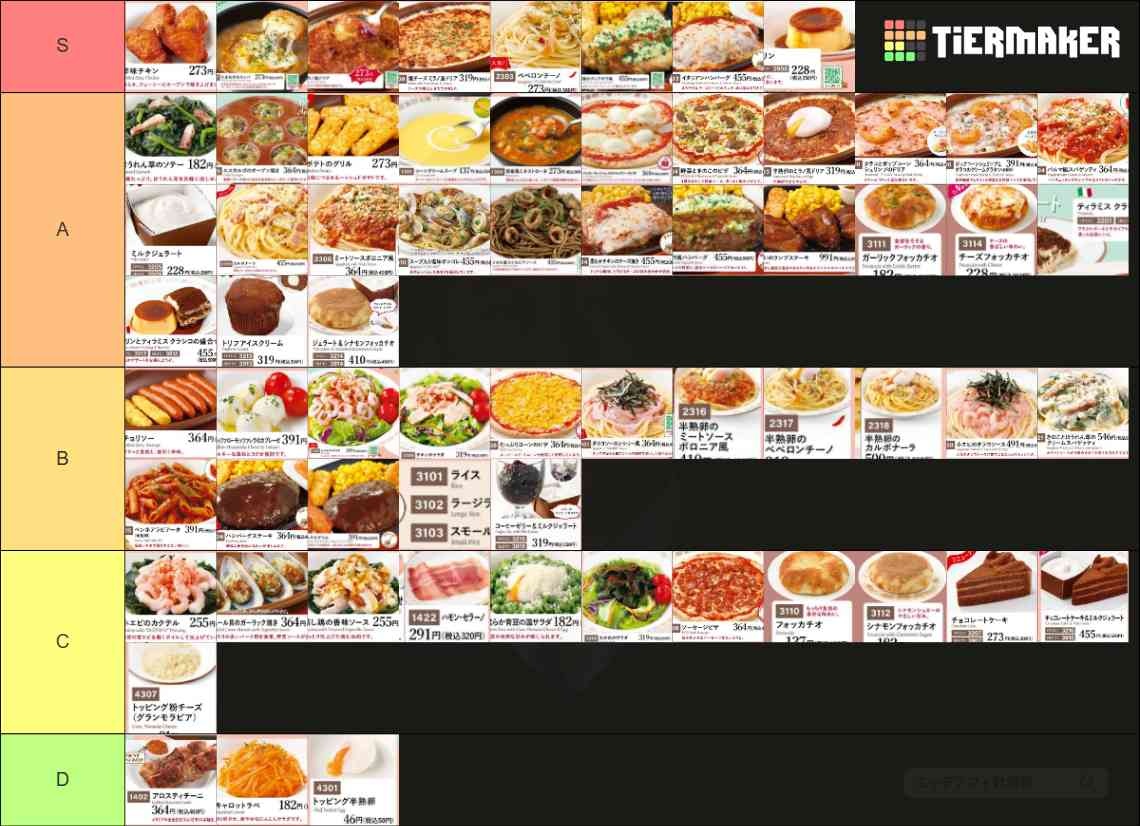 【画像】サイゼ店員の作った「サイゼリヤTier表」www