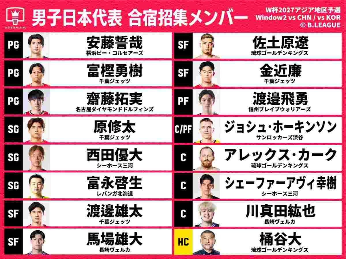 【画像】バスケ日本代表、ワールドカップ予選に挑む新体制(ホーバス解任後初)でのメンバーを発表するもあまりに弱いw w w w w w w w w w w w w w