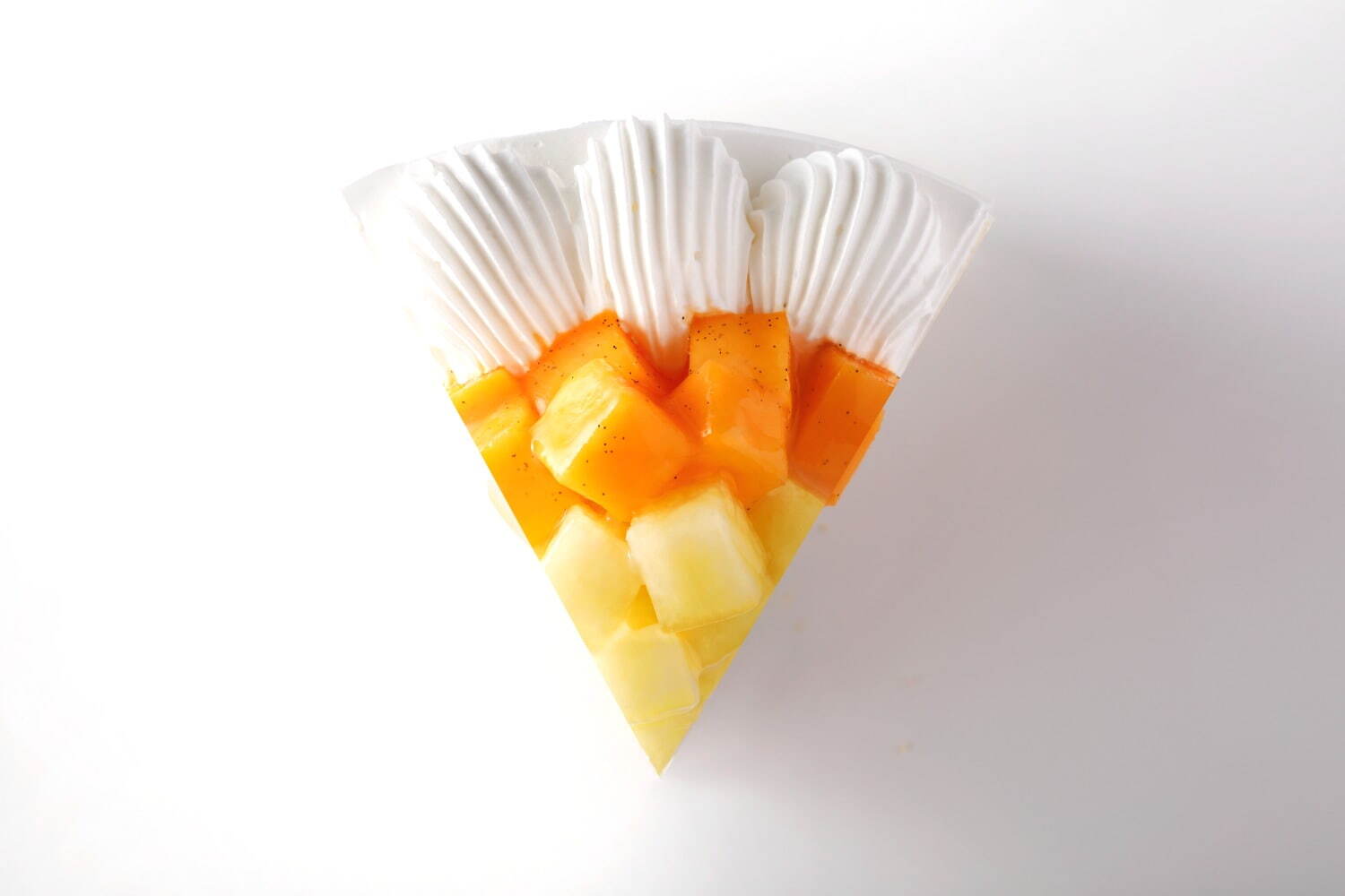 「エクストラスーパーショートケーキ」は、高い人気を誇る「エクストラスーパーメロンショートケーキ」と、旬の国産マンゴーを使用した「新エクストラスーパーマンゴーショートケーキ」を組み合わせた贅沢な1品だ。マスクメロンは、1本の木で1つの実のみを栽培することで、みずみずしい美味しさをギュッと凝縮。マンゴーは、ジューシーな果汁ととろける食感を楽しめる。