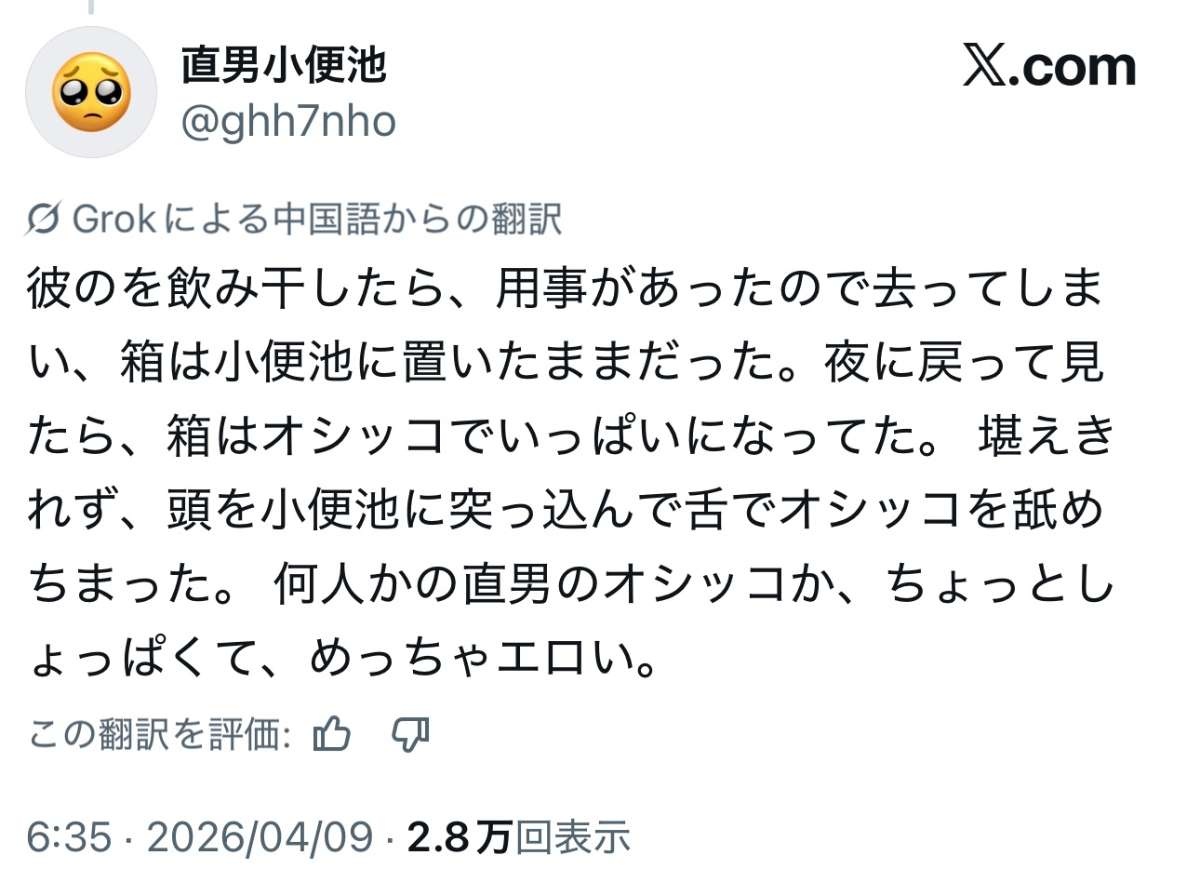 めっちゃ熱くて味もすっごくクサくて、水分不足のせいかな?https://x.com/ghh7nho/status/2041993318251556922x.com - 2 : 2026/04/09(木) 19:50:46.96 ID:GQmgh1IE0