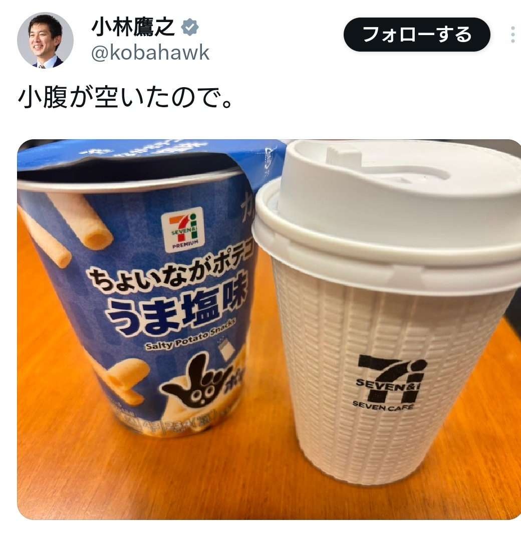【画像】俺たちのコバホークガチで庶民派!!!リラックスはセブンイレブンのコーヒーとお菓子!!!