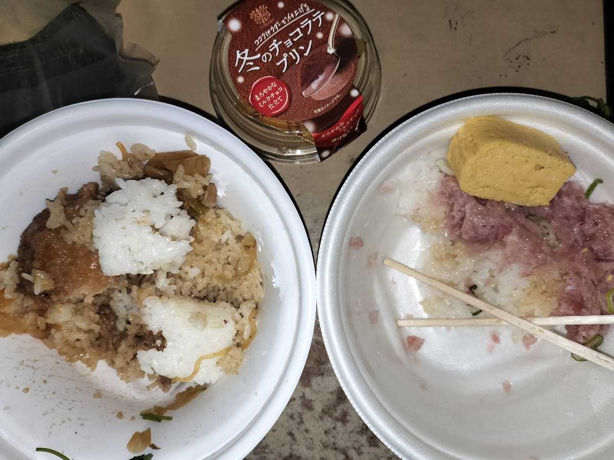 - 丼が二つというのが趣味合わんな