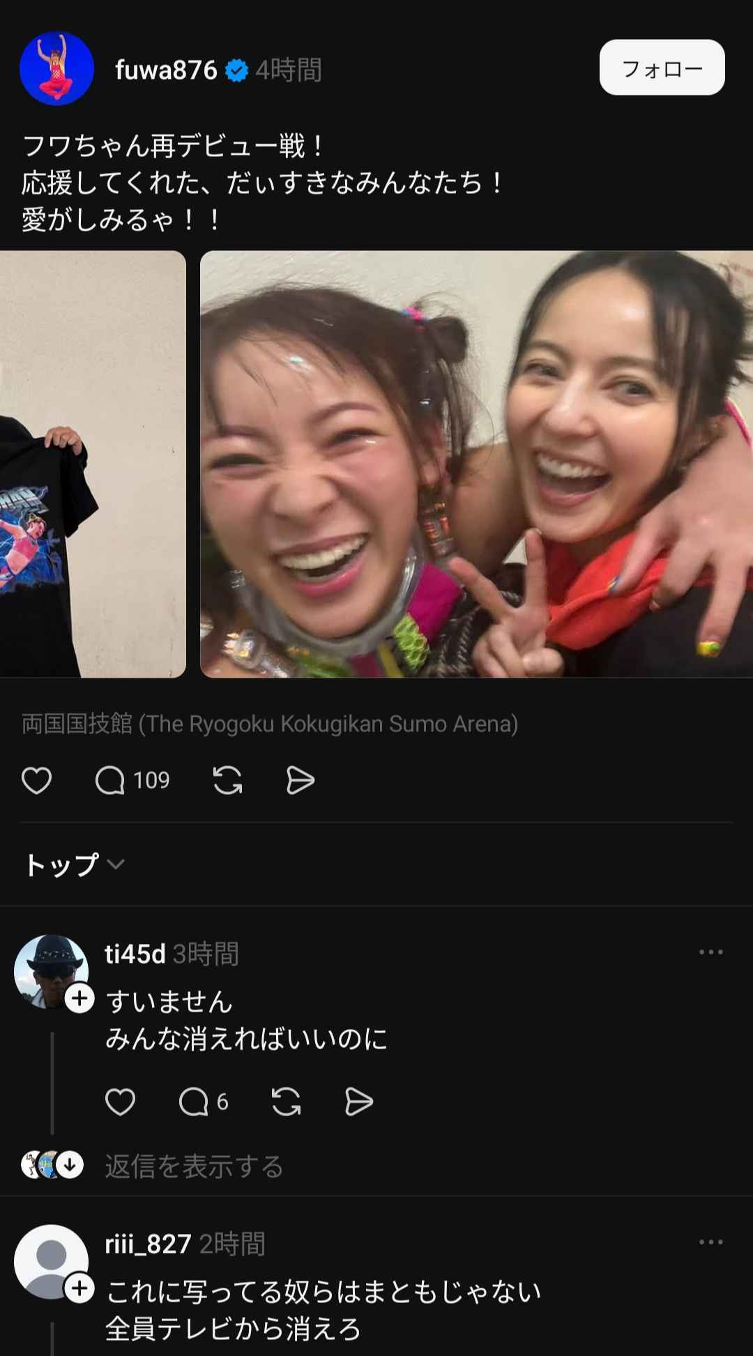 【画像】元フワちゃん、「仲間」に支えられ女子プロレスデビューwww