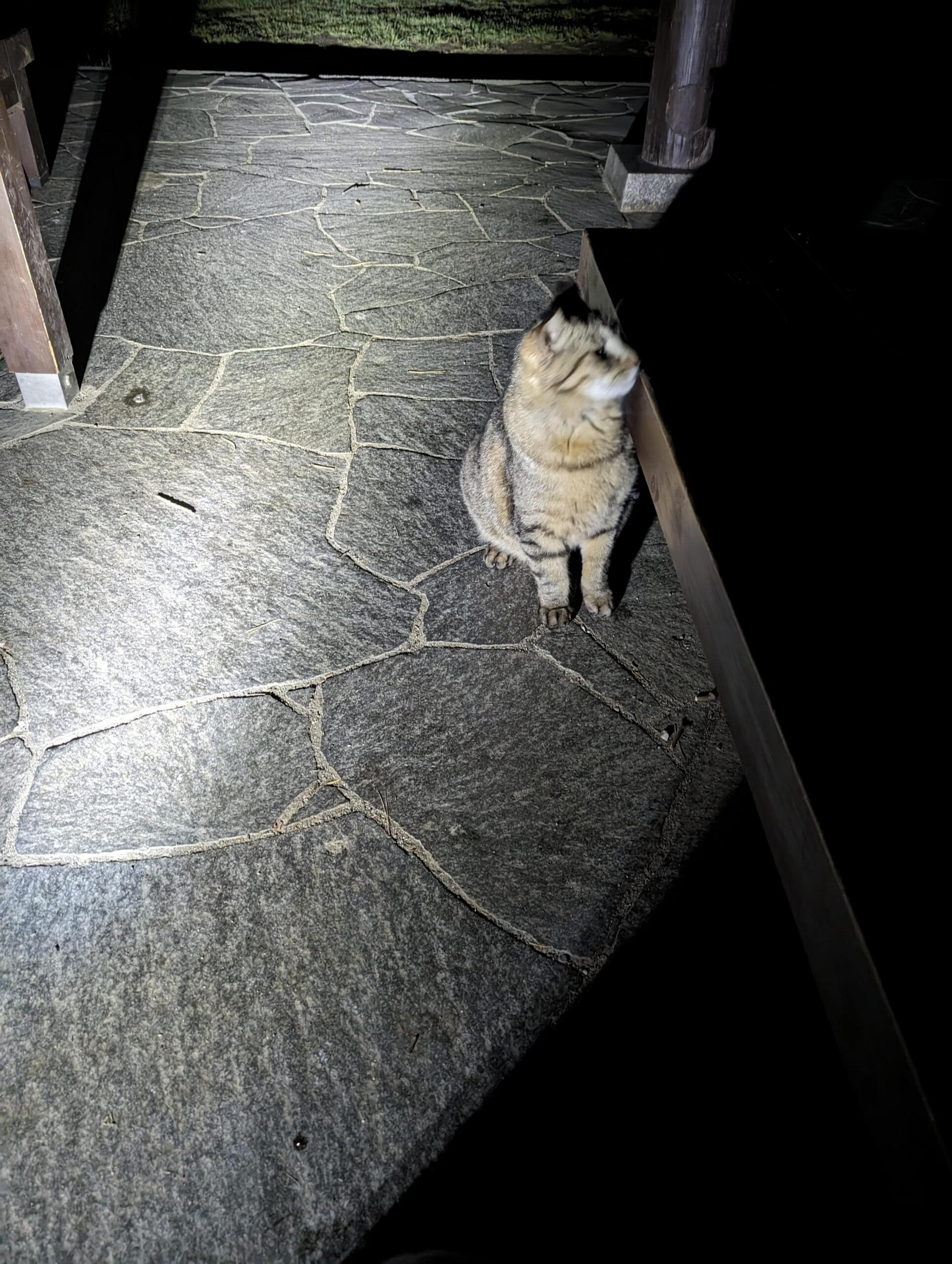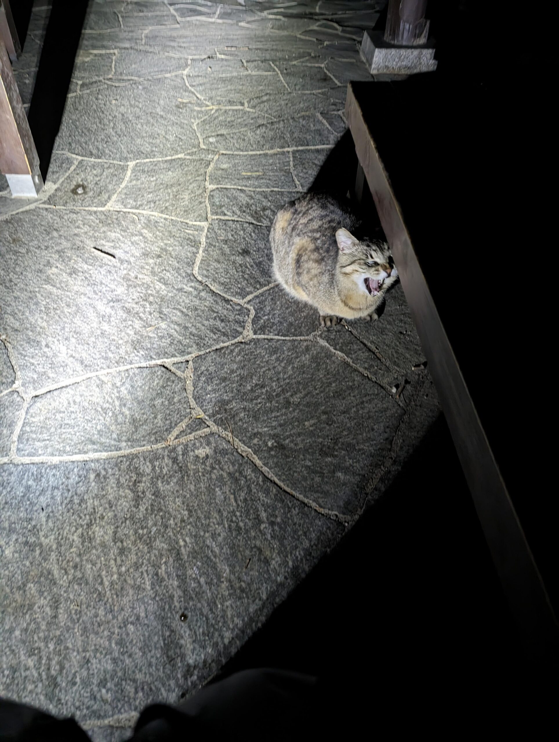 - 夜に公園にいたら猫が突進してきたから地面をバチーんと踏み鳴らしたらUターンしてった