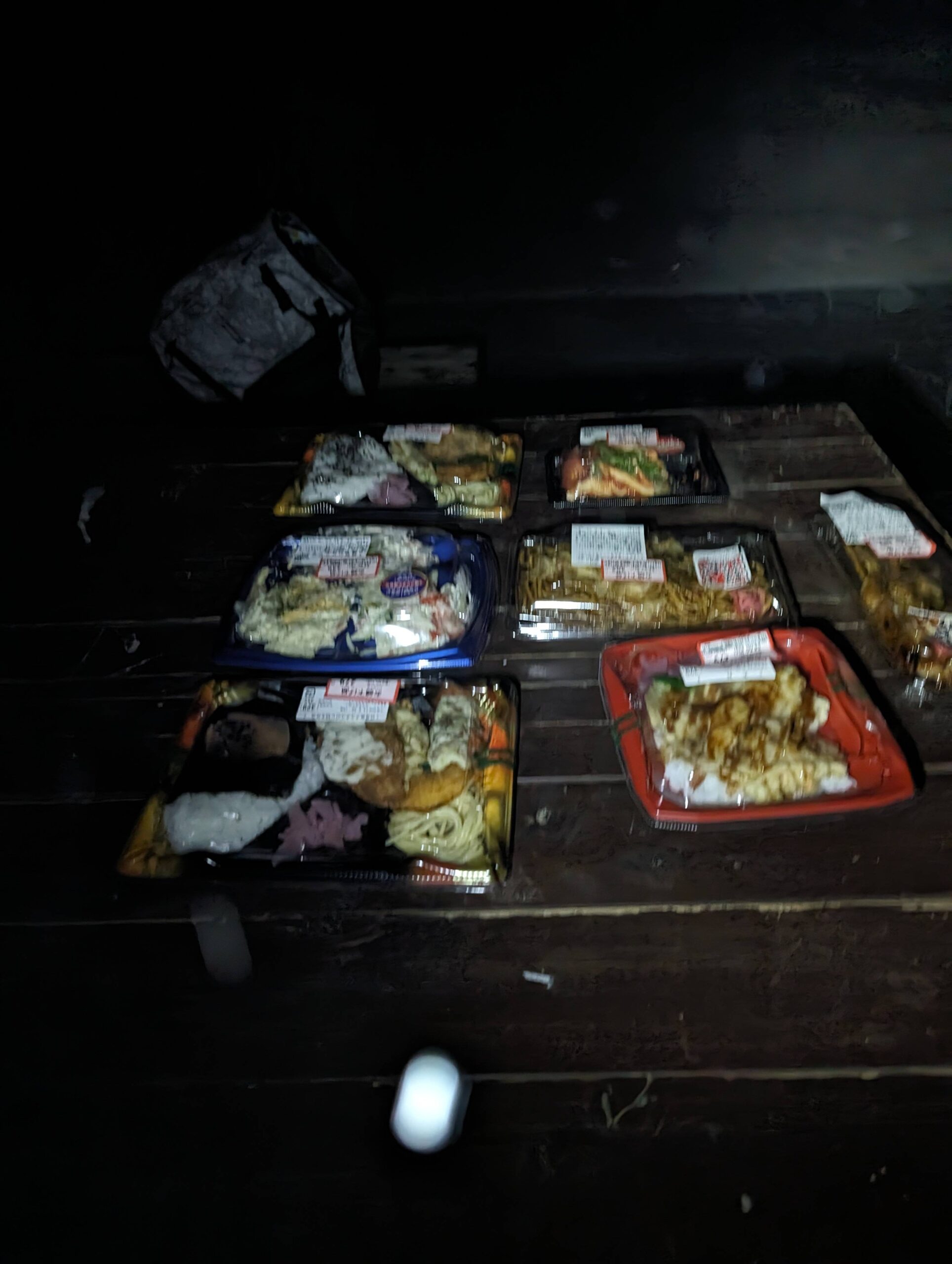 - 公園で夜中に半額弁当並べて食ってるの怖いよ