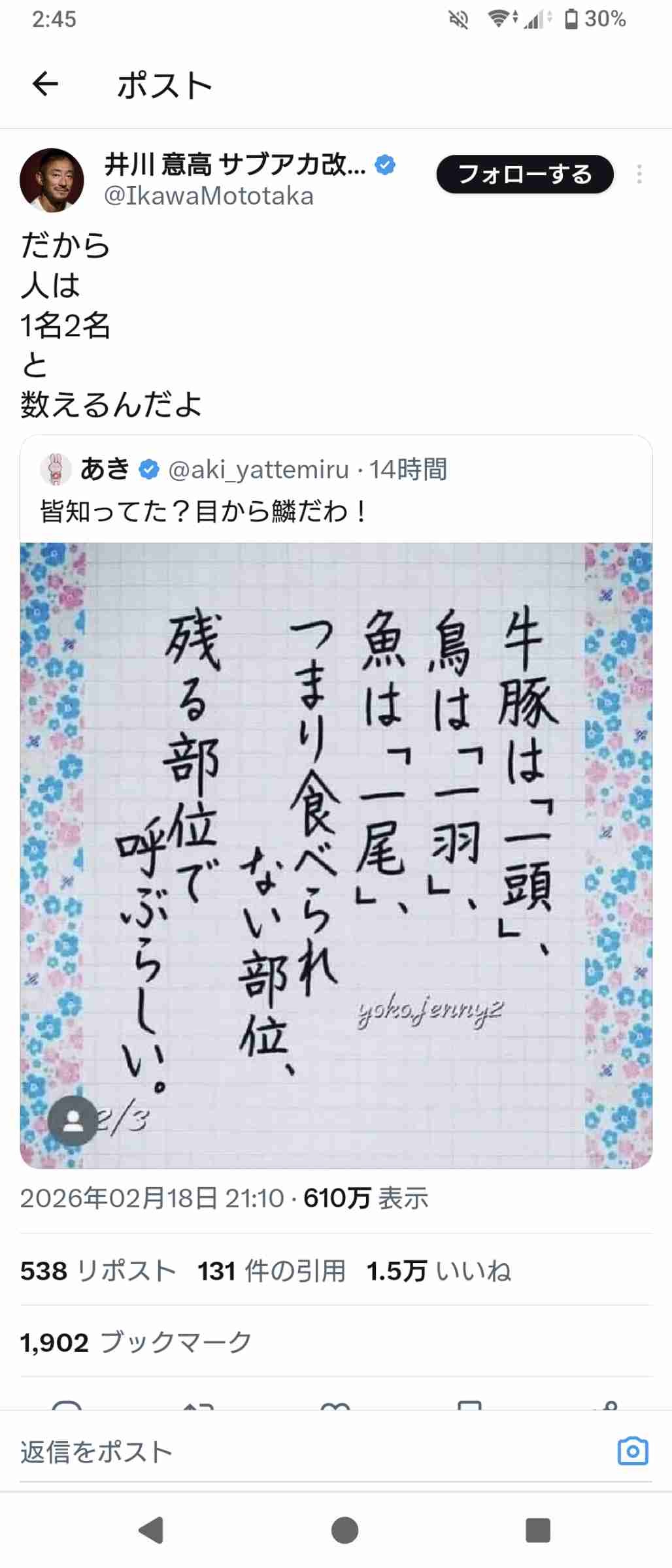 ちなワイゲェジいいね連打してマルチ勧誘受けるわ - 24 : 2026/02/19(木) 03:06:29.33 ID:bELxktUZ0