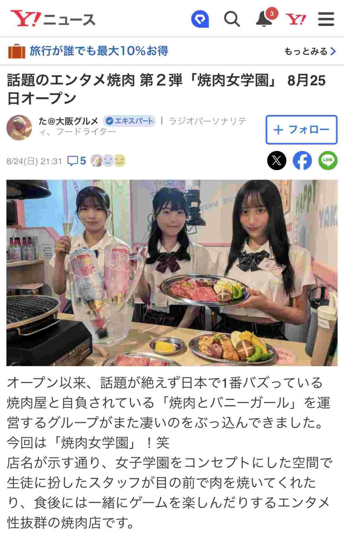 話題のエンタメ焼肉 第2弾「焼肉女学園」 8月25日オープン